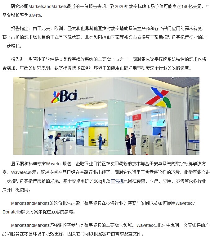 安卓系统数字标牌将促进整个行业市场的发展